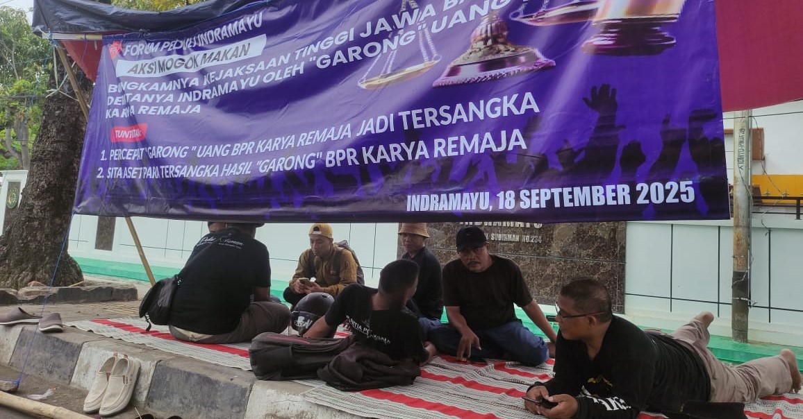 Indramayu | dinamikapendidikan.com – Forum Peduli Indramayu (FPI) lakukan aksi ‘Mogok Makan’ didepan Kejaksaan Negeri Indramayu. Aksi mogok makan dipimpin oleh Korlap FPI Masdi dan diikuti sebanyak 9 orang.Kamis (18/09/2025)