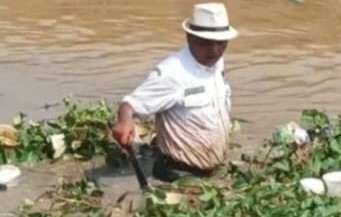 Kades Ciasem Girang TAHRONI Pimpin Bersih – bersih, Terjun Langsung ke Sungai Cijengkol