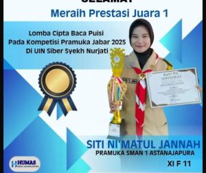 Cirebon | dinamikapendidikan.com – SMAN 1 Astanajapura kembali menorehkan prestasi gemilang. Sekolah yang dikenal aktif dan berprestasi di berbagai bidang ini lagi-lagi berhasil menjadi juara, kali ini dalam ajang Lomba Cipta Baca Puisi Pada Kompetisi Pramuka Jabar 2025 di UIN Siber Syekh Nurjati. SMAN 1 Astanajapura ini berhasil meraih Juara 1, mengalahkan puluhan peserta dari berbagai sekolah menengah atas lainnya.