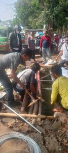Subang | dinamikapendidikan.com – Jembatan di jalan Arif Rahman Hakim di depan kantor Golkar yang selalu banjir dan air nya melimpah ke jalan raya di perbaiki oleh pihak PUPR Subang Bidang Pemeliharaan, hal ini dalam rangka penanggulangan ke daruratan kami dari pihak PUPR Bidang Pemeliharaan terjun langsung ke lokasi untuk memperbaiki sumbatan air, ternyata sumbatan air tersebut berasal dari lintangan Kabel Optik PLN yang menutupi sebagian gorong – gorong jembatan sehingga arus aliran air tersumbat.