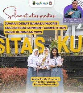 SMAN 2 cirebon juga berhasil lagi meraih juara 1 dan 3 lomba debat bahasa inggris, dalam ajang English Edutainment Competition Uniku Kuningan 2025. Prestasi ini diraih berkat kerja keras siswa serta dukungan penuh dari para guru pembimbing dan pihak sekolah.